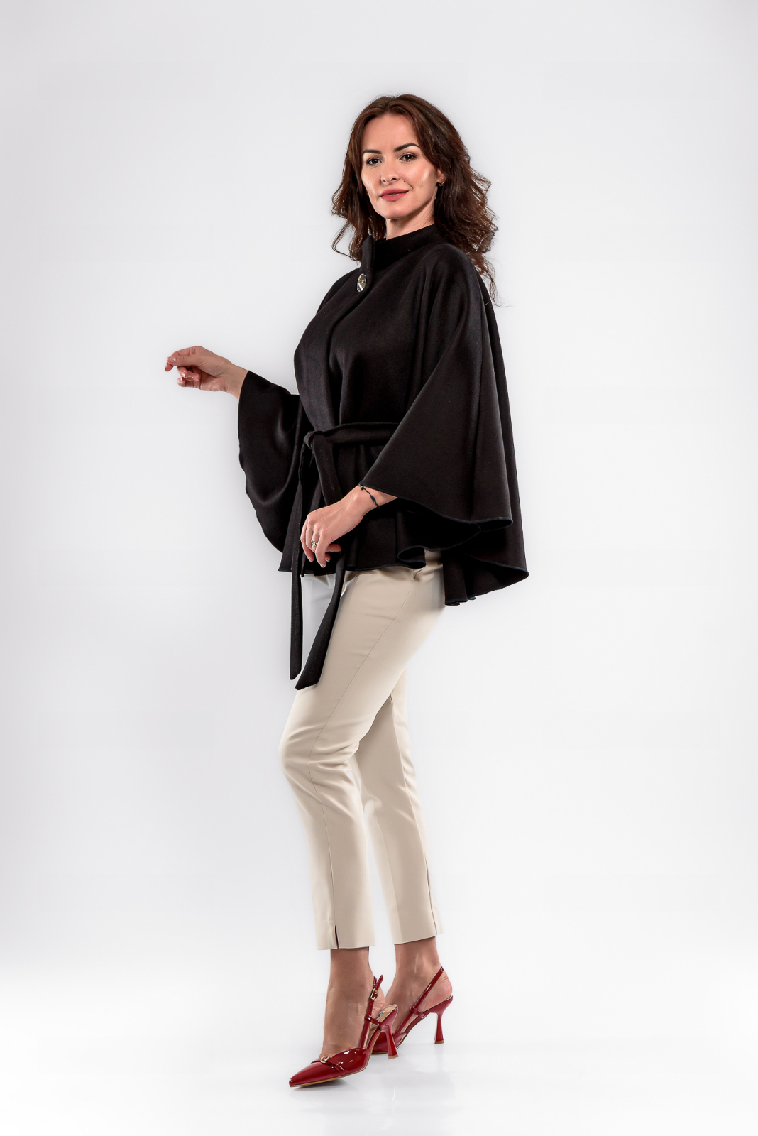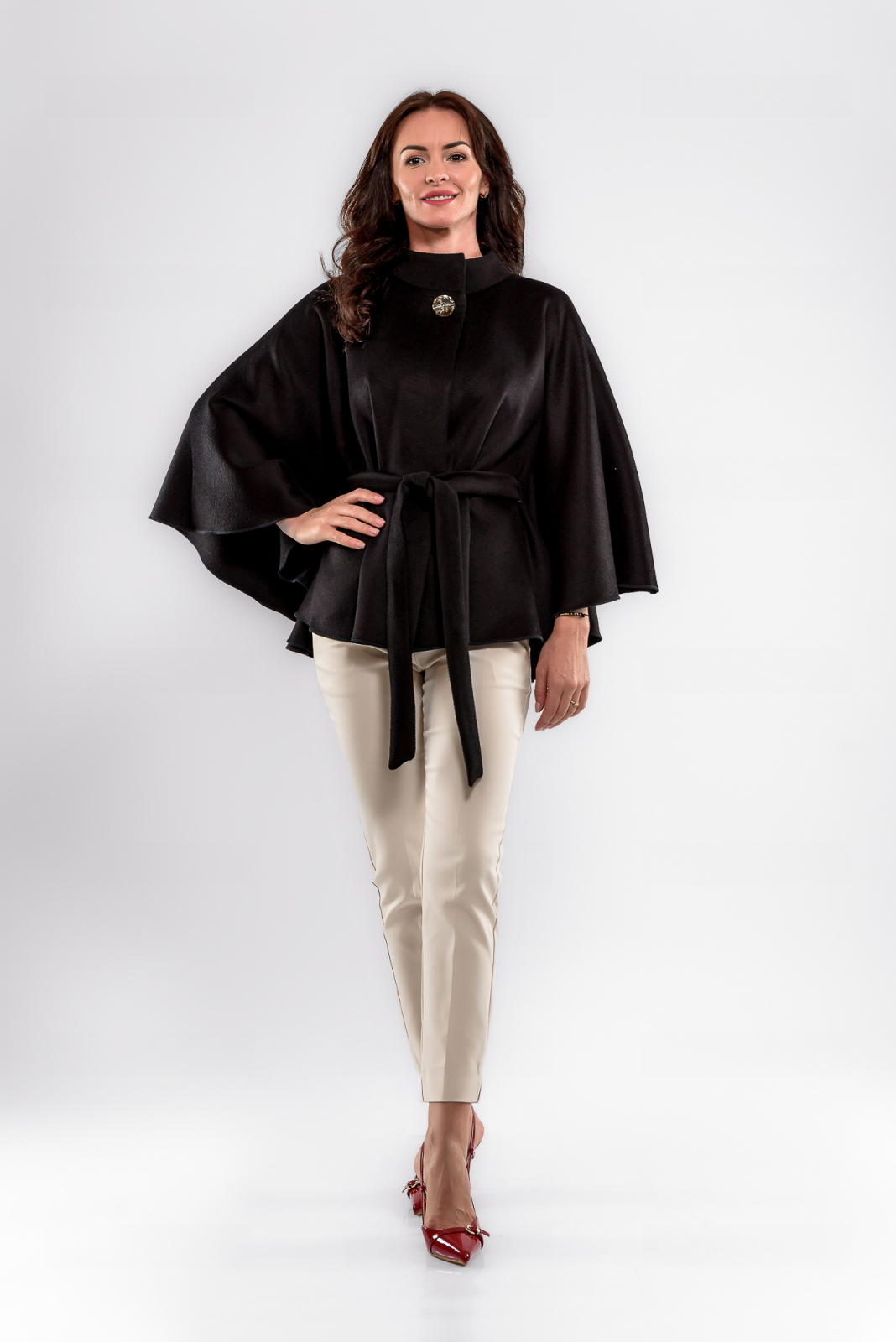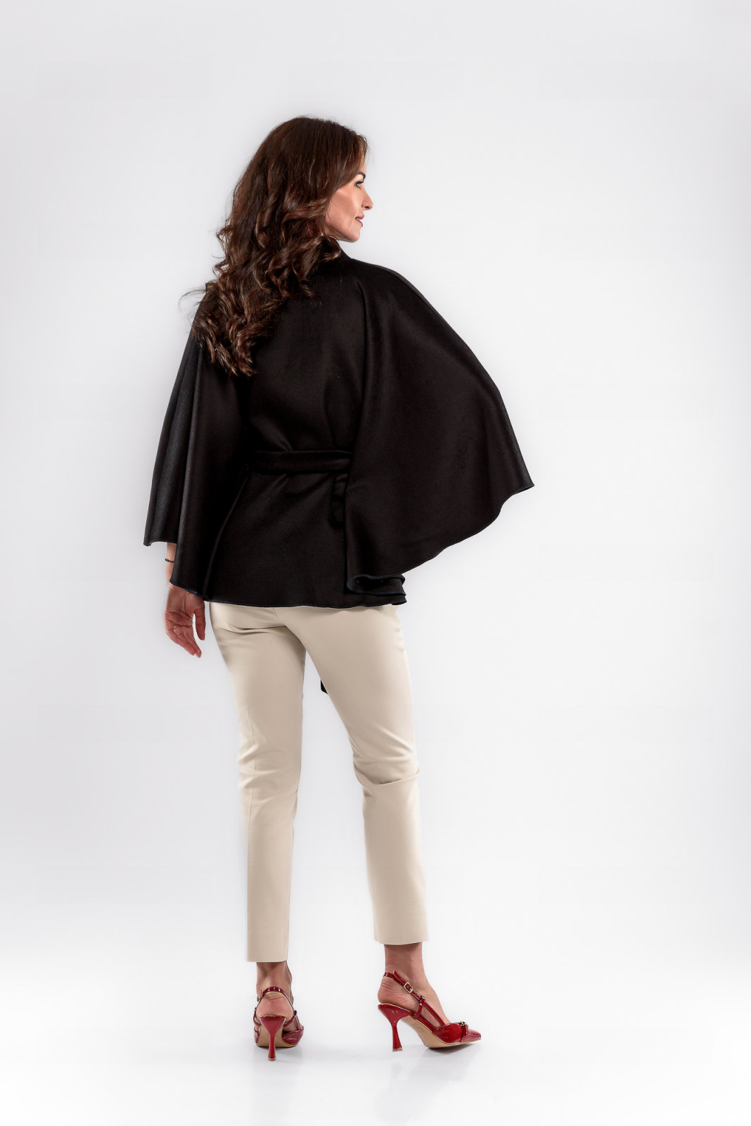 • Capă scurtă din stofă neagra, cu o croială lejeră