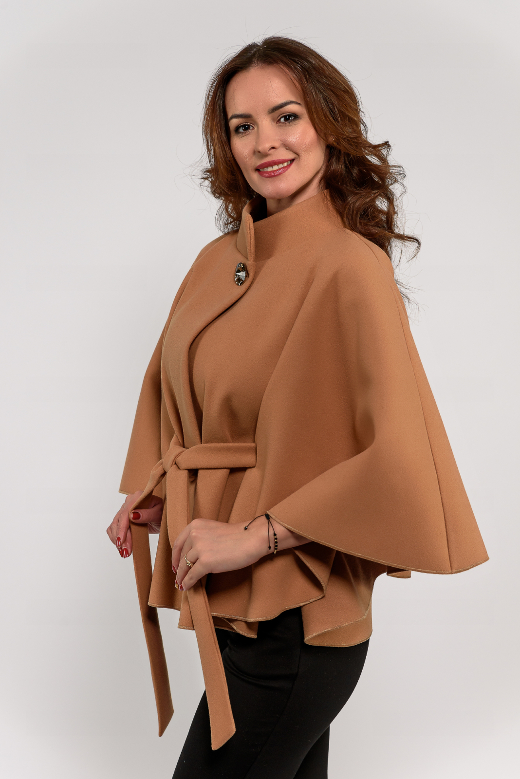 Capă scurtă din stofă ciocolată cu lapte, cu o croială lejeră