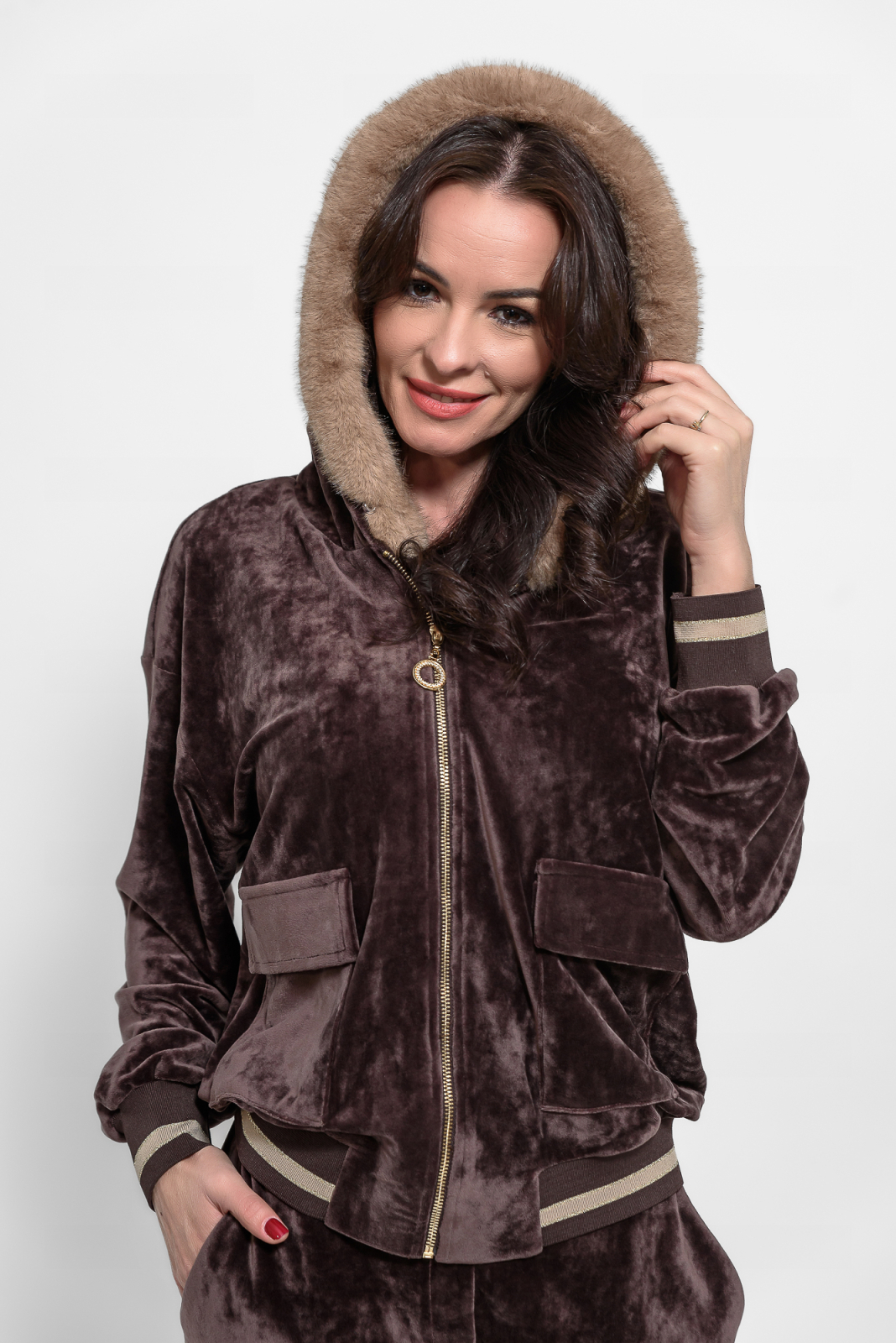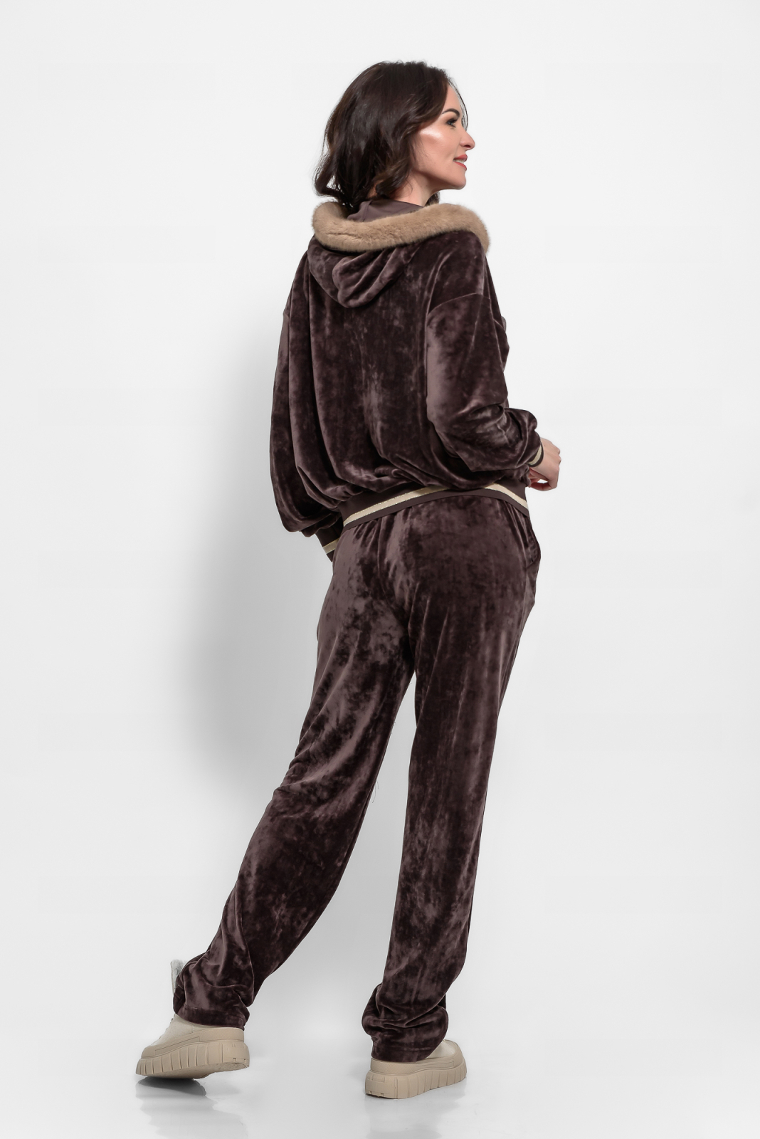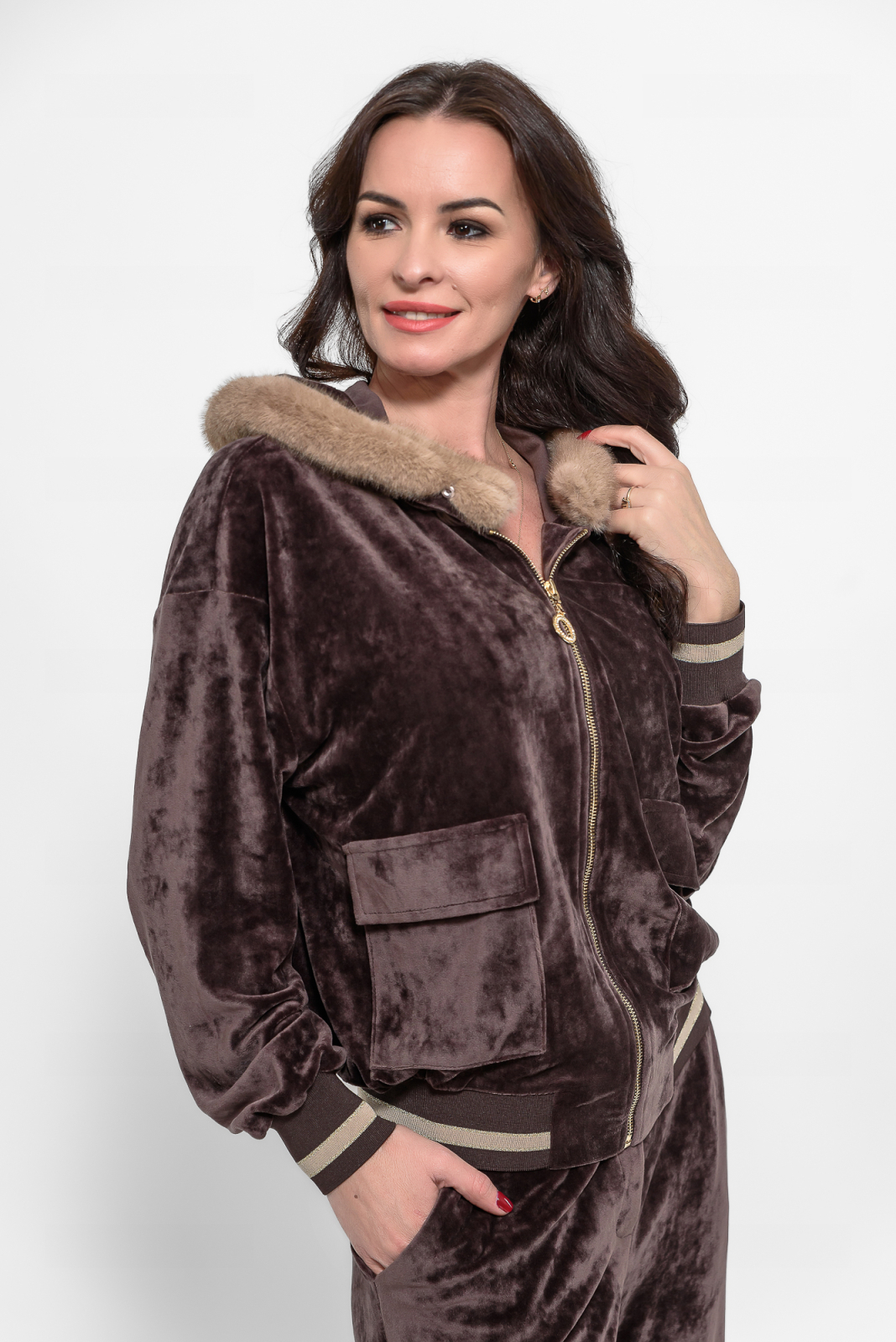 Compleu casual catifea maro cu blanita