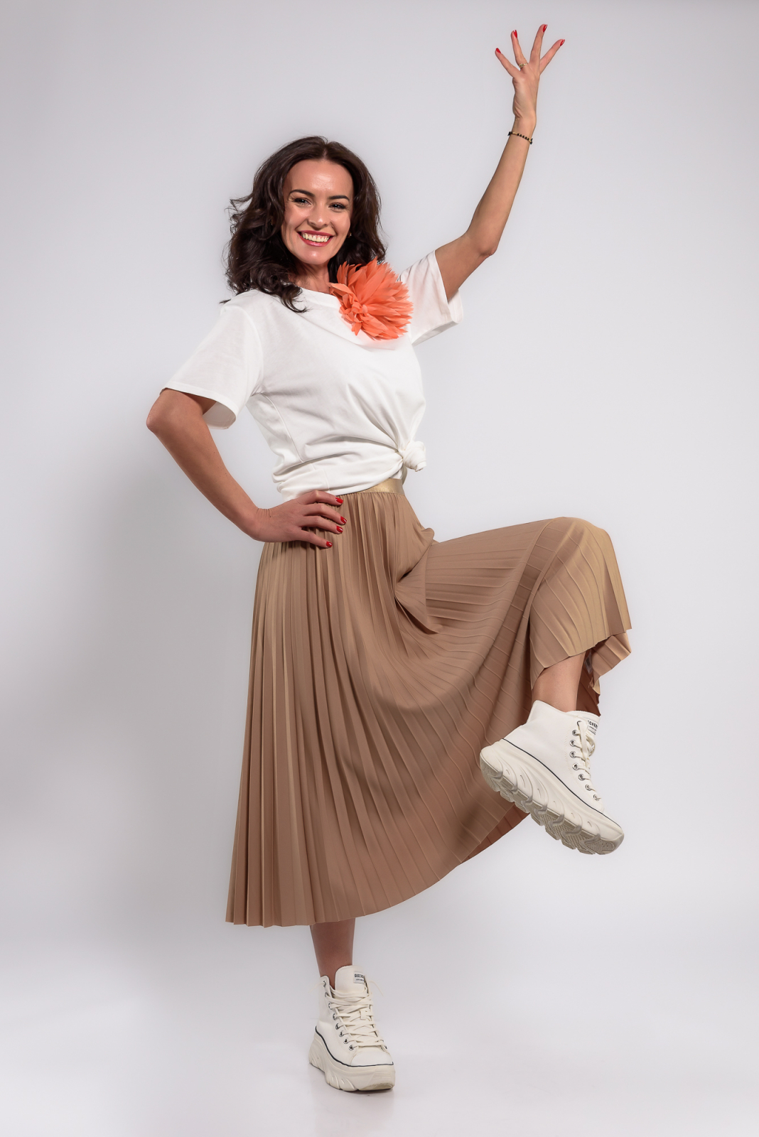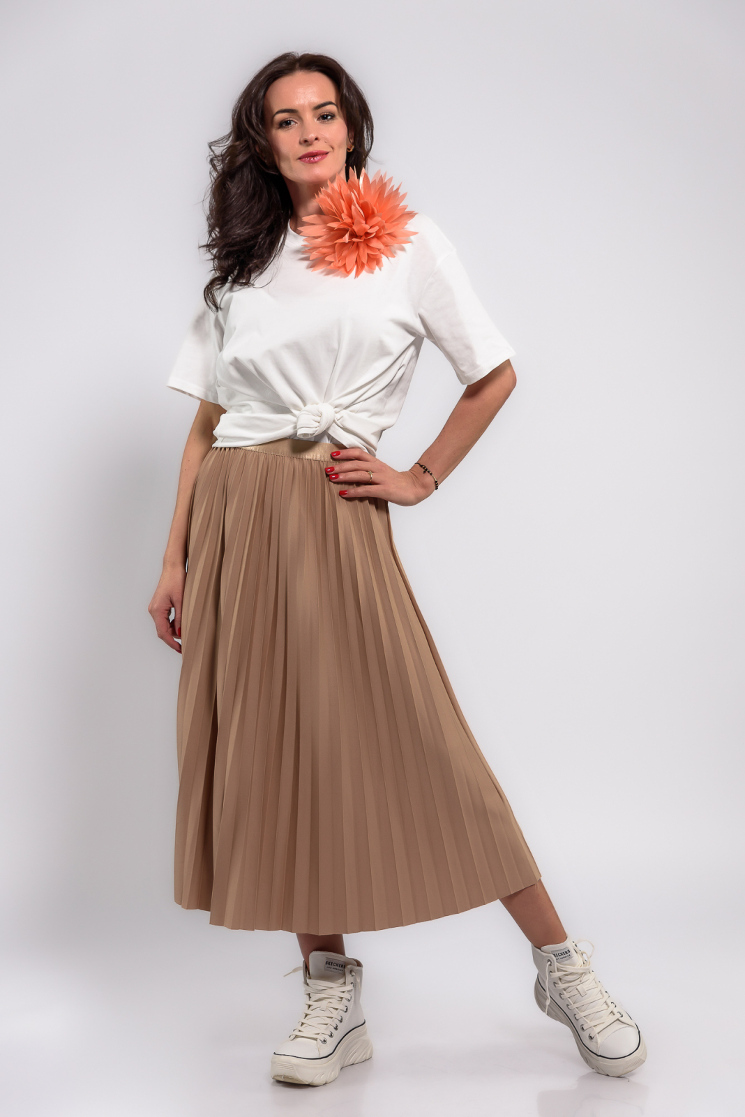 Fusta midi plisată damă, stil versatil – de la casual cu teniși, la elegant cu top de seară