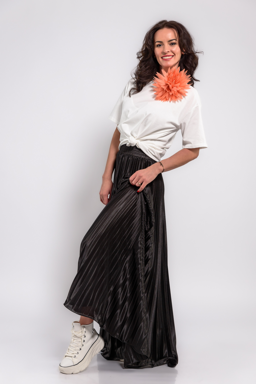 Fustă lungă plisată damă, stil versatil – de la casual cu teniși, la elegant cu top de seară
