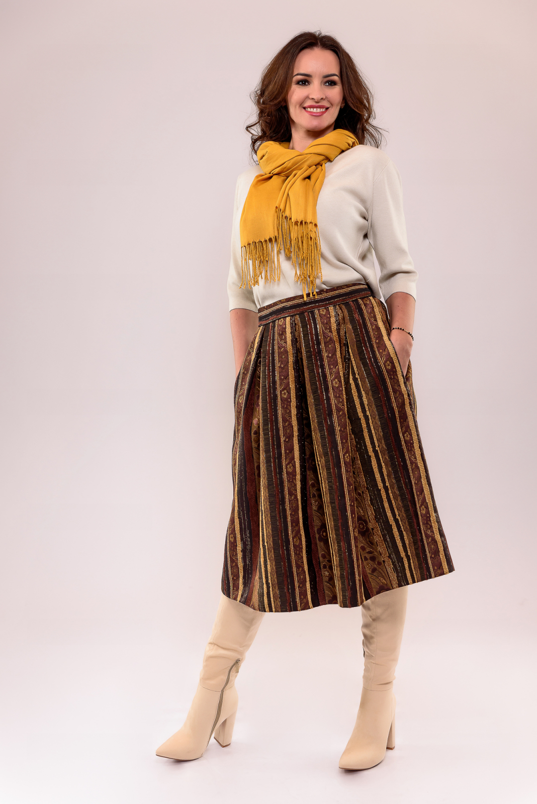 -fusta cu dungi in nuante de maro -elastic la spate pentru un plus de confort -compozitie:40%bbc,40%pes,20%vasc -produs fabricat in Romania