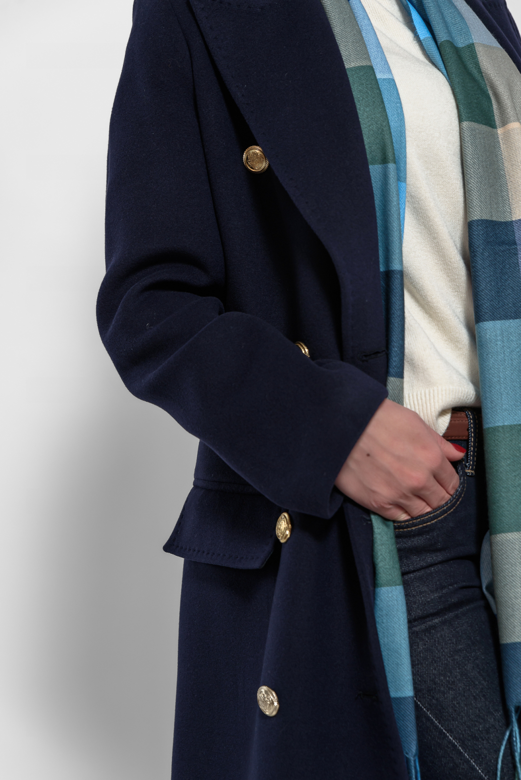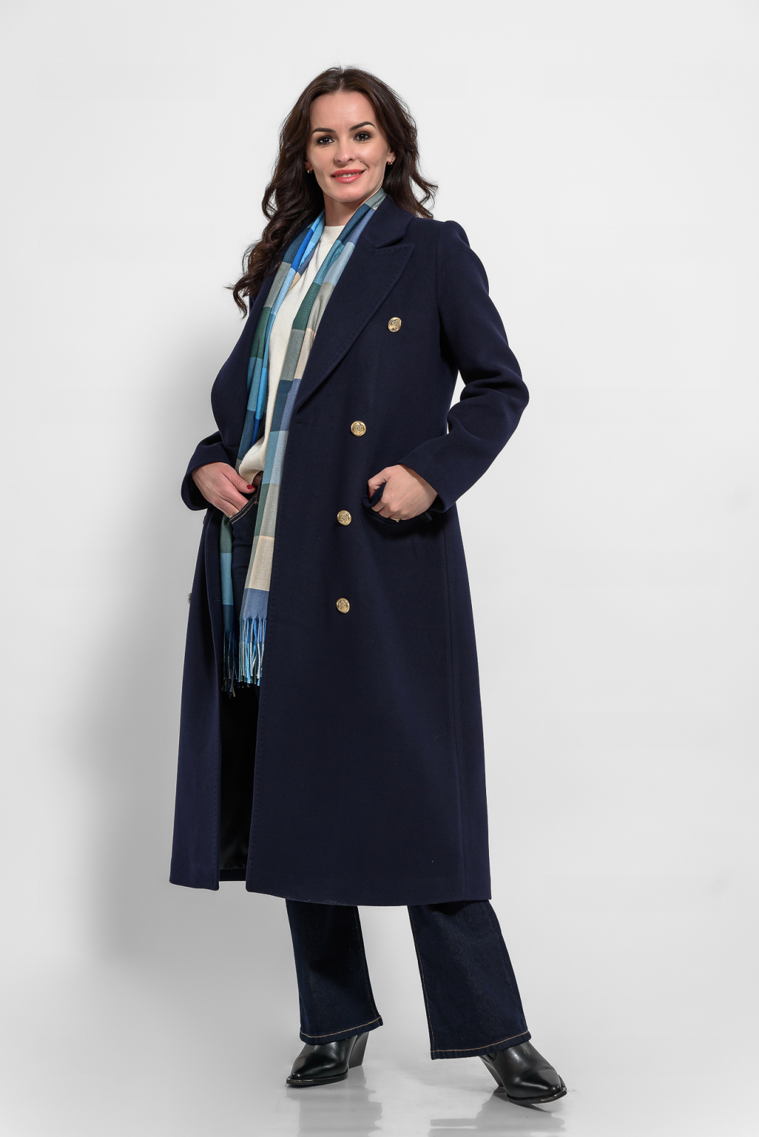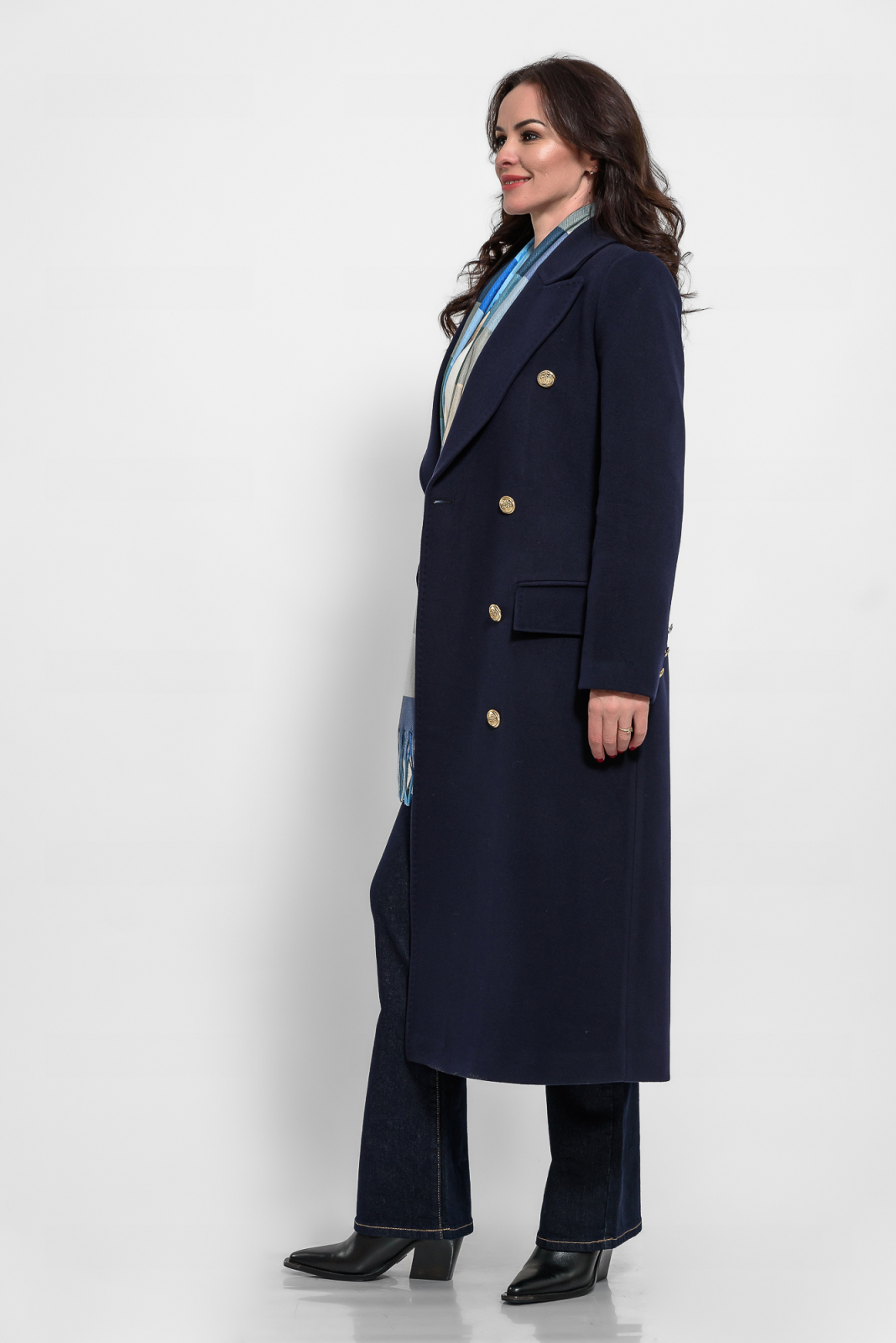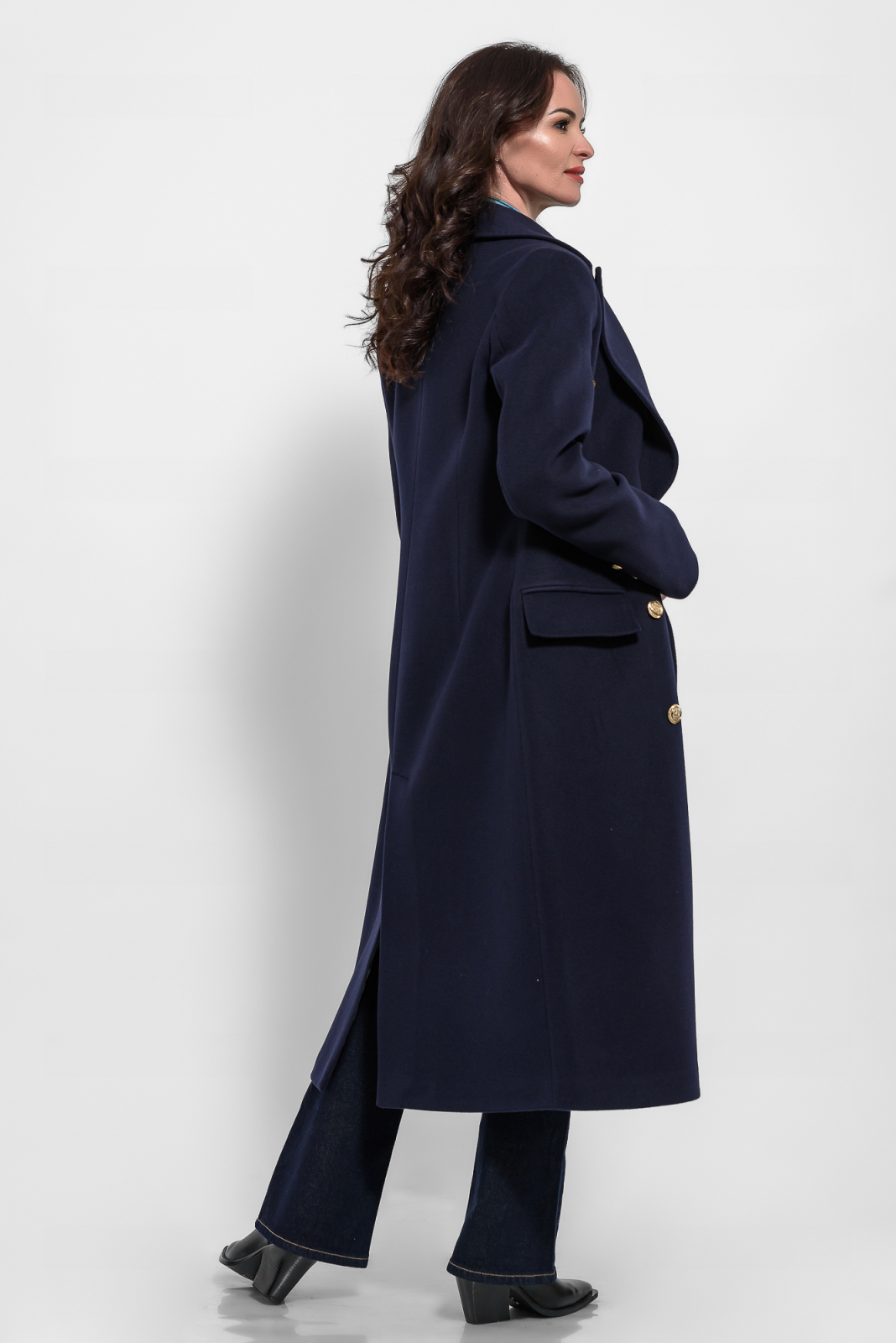 Palton bleumarin cu casmir la doua randuri de nasturi