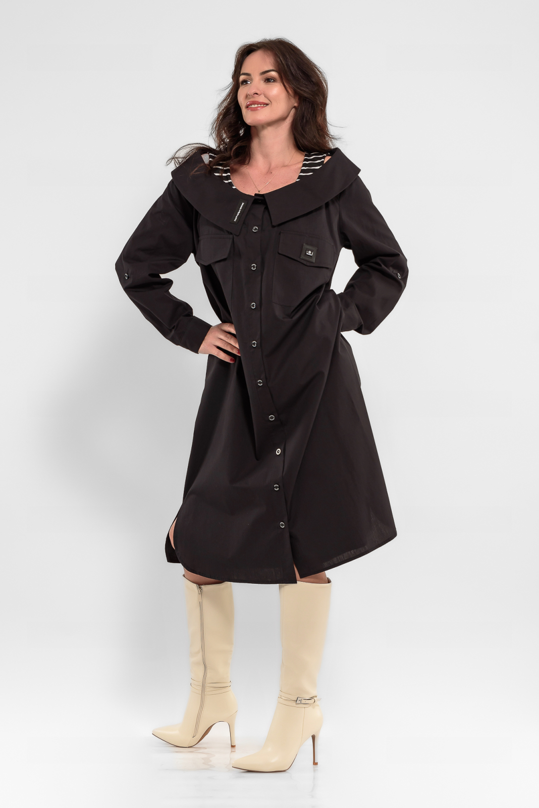 Rochie din poplin fin negru marimi mari