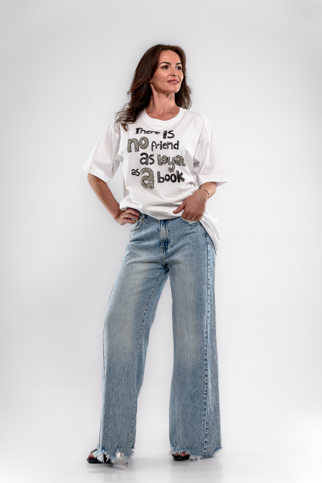 Tricou oversize cu logo motivational si strasuri